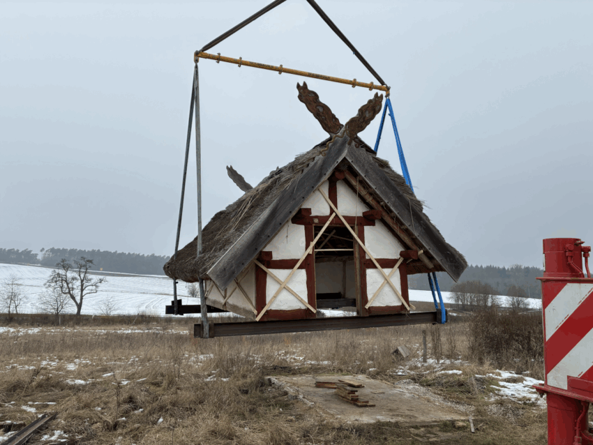 Die Hütte von Mastermyr wurde zuerst mit einigen Verstärkungen versehen und dann auf Träger gestellt. Und dann ging die Reise los.